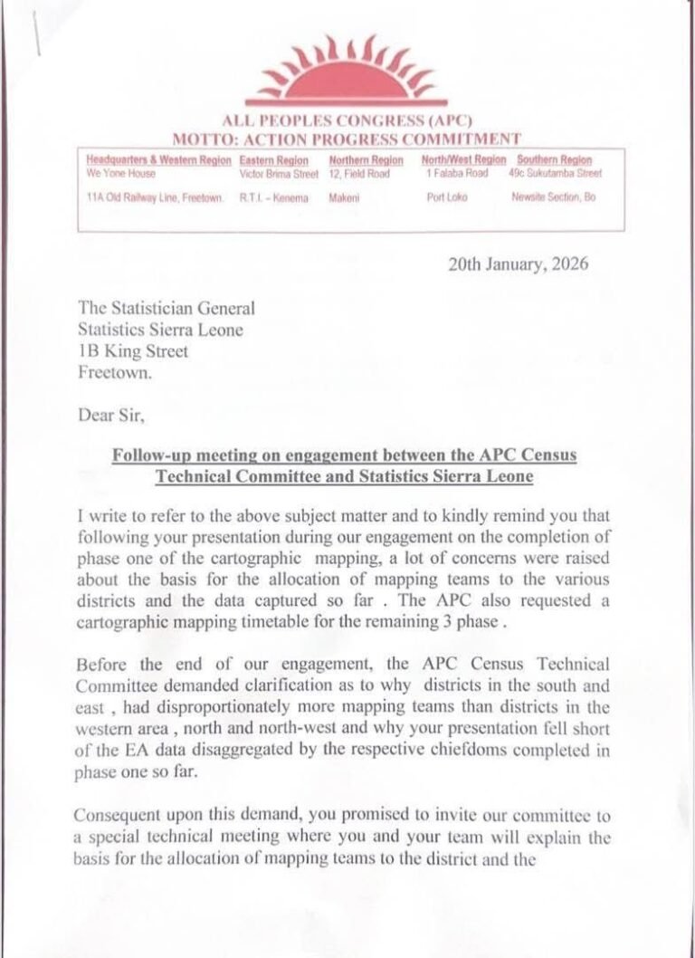 FREETOWN, Sierra Leone – 4 February 2026: The All People’s Congress (APC) National Secretary General has issued a formal…