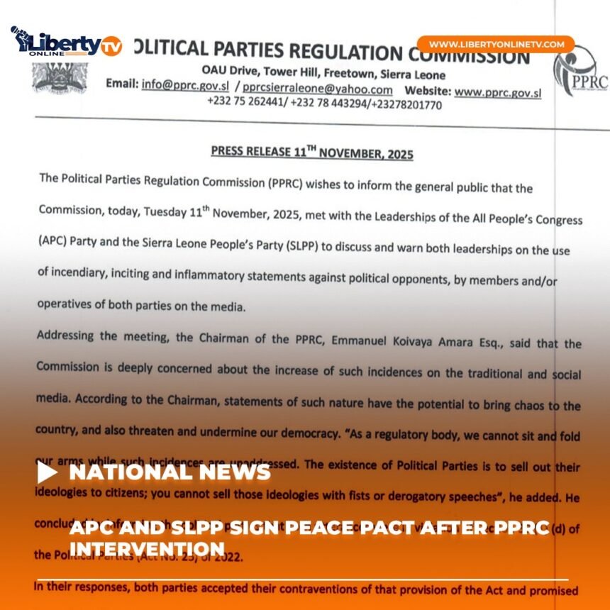 The Political Parties Regulation Commission (PPRC) has brokered a significant agreement between Sierra Leone’s two main political parties, compelling them to curb incendiary language following a surge in hostile rhetoric.